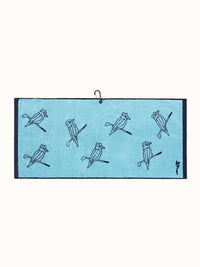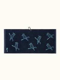 Clean up your game with our Kooka Icon Tour Towel in Navy and Sky jacquard knit! Created to tour spec, using 490gsm 100% Cotton Velour. The Kooka Icon Tour Towel is ultra-absorbent, soft and durable to get deep into the grooves of your irons and wedges and keep all your clubs and shoes free of dirt and moisture. Washable and attachable to any golf bag by mid-section caribiner & eyelet, the Kooka Icon Tour towel is the perfect companion for any day on the course.