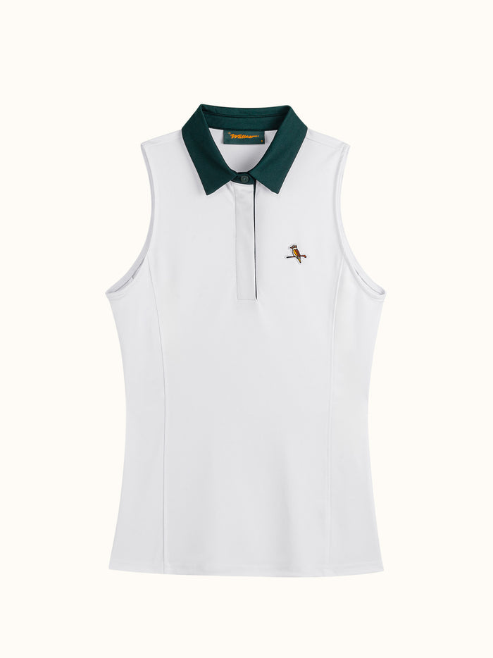 • Womens Sleeveless Polo White / Forest