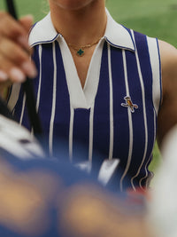 Womens Stripe Knit Polo Navy / White