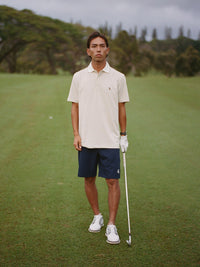 The Members Short in Navy delivers performance-focused design with lightweight 4-way stretch fabric that moves with your game. Engineered pockets keep essentials secure—invisible zip sides, rear tee slots, and dedicated internal ball marker pocket ( its inside the left front pocket if your wondering ) while the non-slip waistband keeps everything in place through your swing. Built for on, and off-course comfort without compromise.